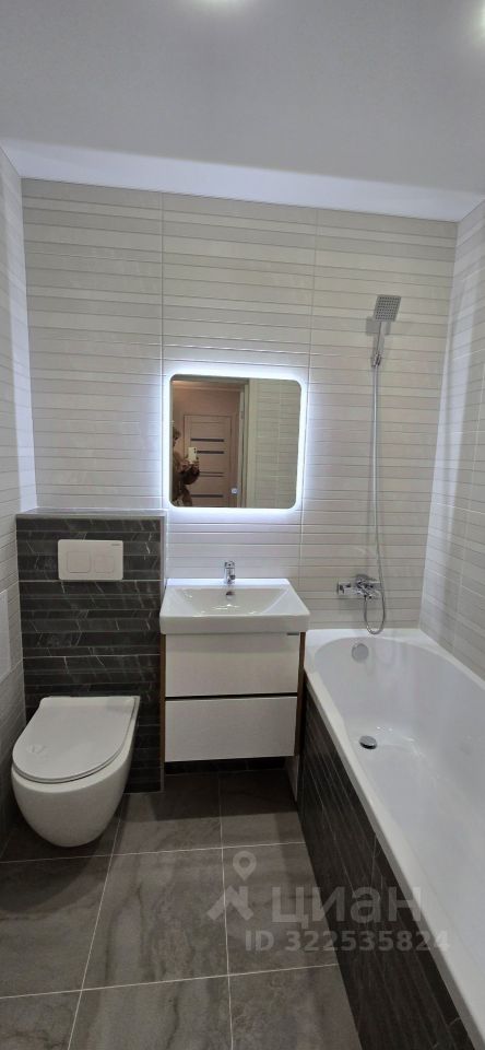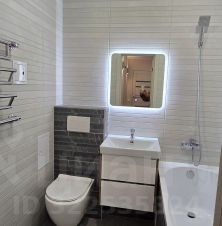 Совмещенный санузел с современной сантехникой, отделанный красивой плиткой.