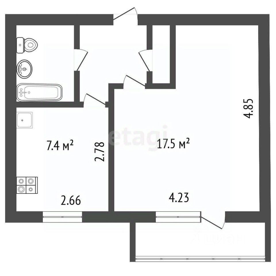 - Санузел совмещен.
