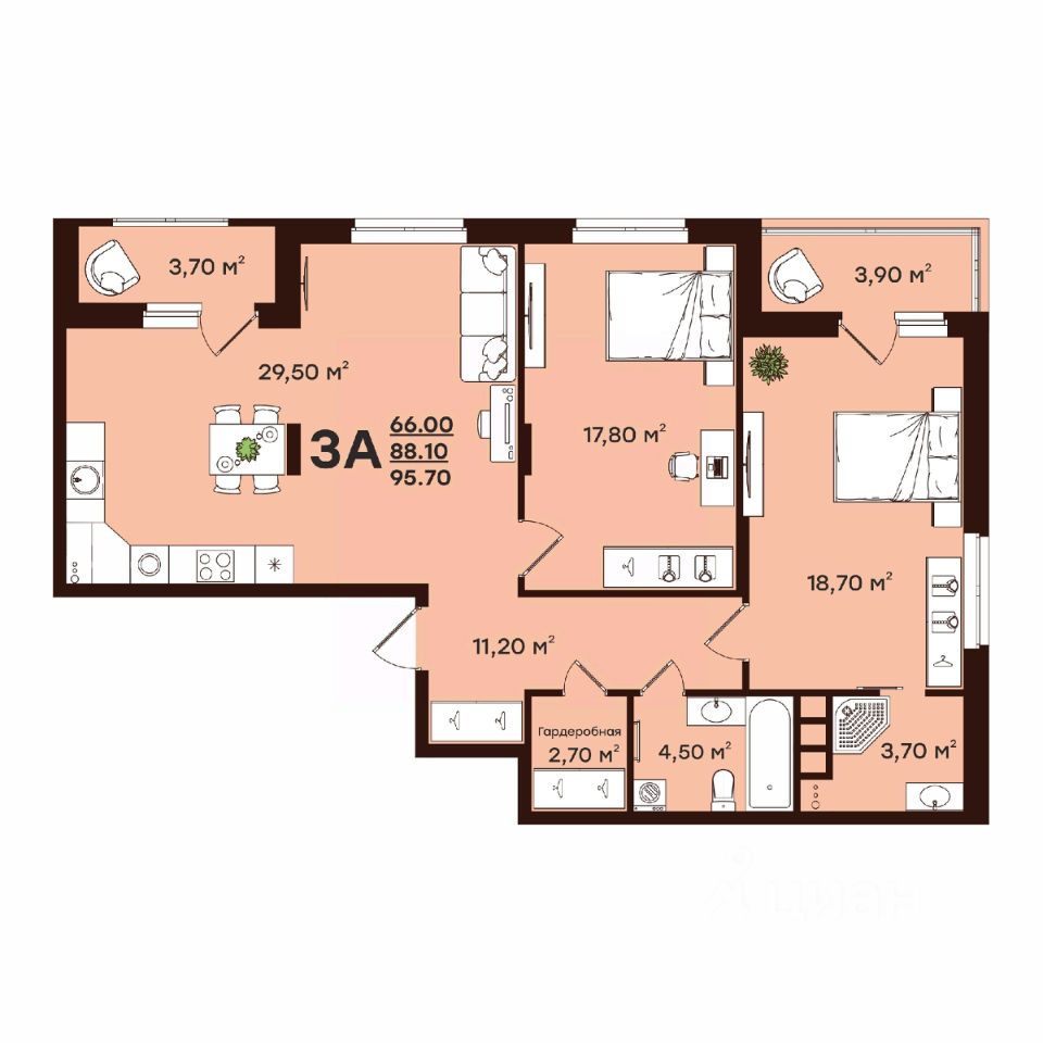 95,7 м²