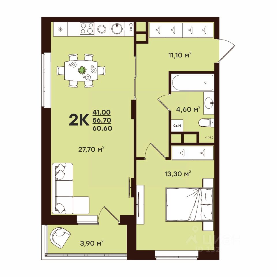 60,6 м²