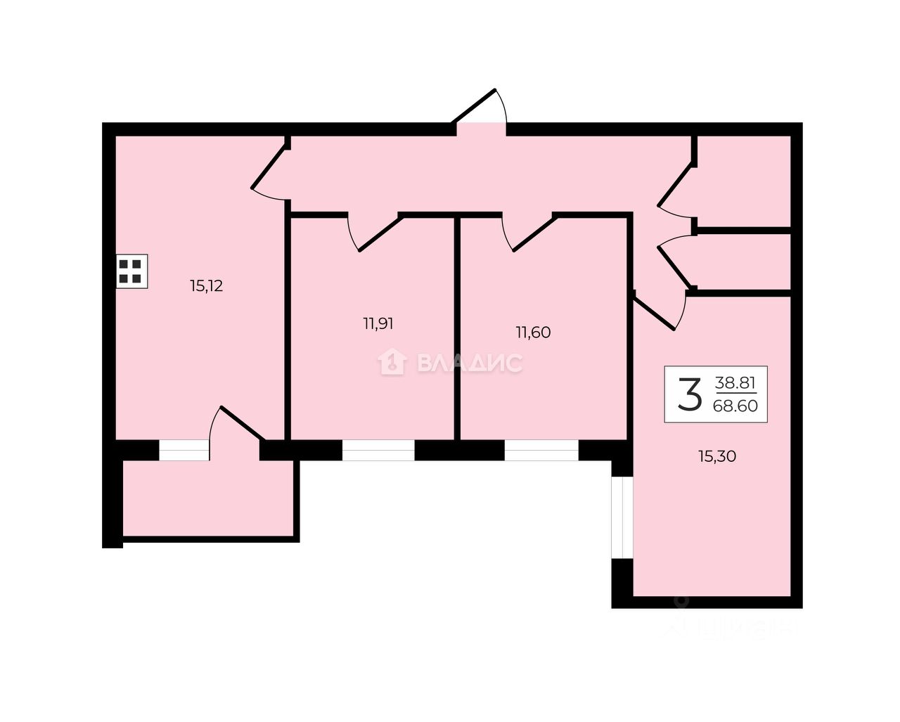 68,6 м²