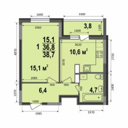 Однокомнатная квартира (38,7/39,2 кв.м) - это квартира с совмещенным санузлом, большой жилой комнатой и просторной прихожей. Окна квартиры выходят на внешнюю сторону дома. На кухне расположен выход на лоджию.