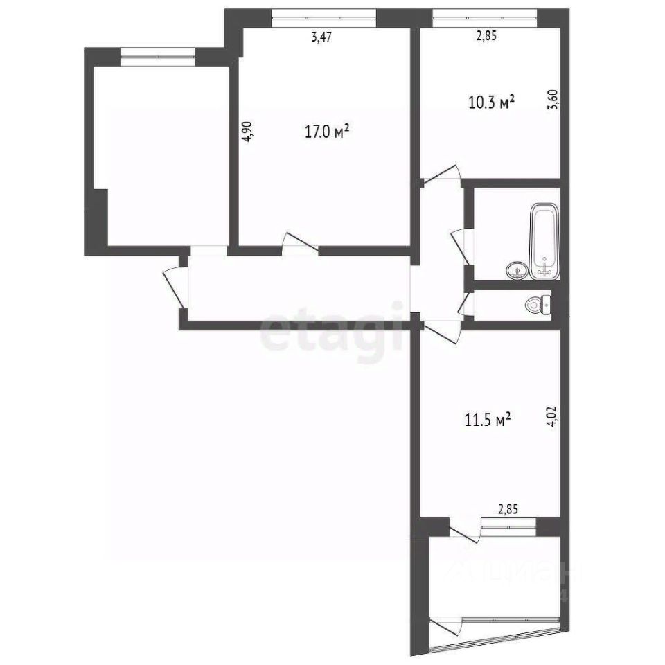 Квартира - распашонка общей площадью 63 кв.м., находится на 8 этаже 9-этажного дома. Площадь кухни 10,6 кв.м.