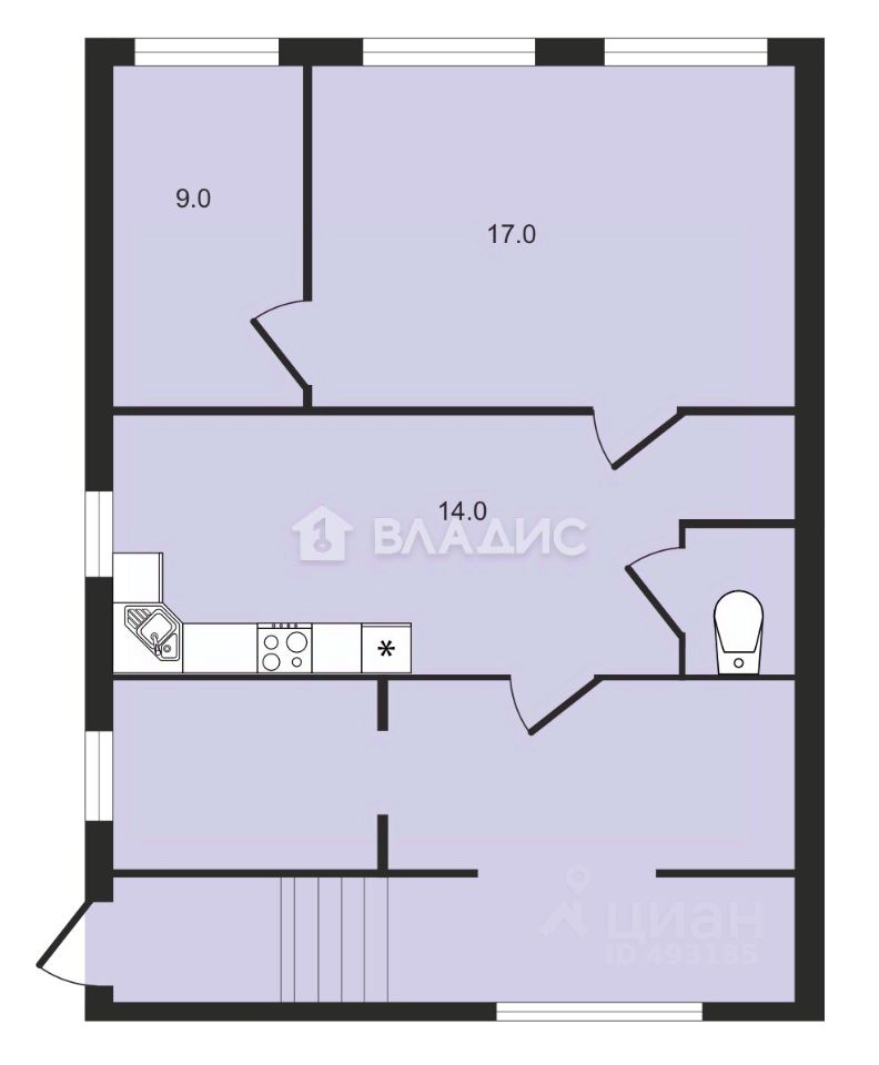 Общая площадь квартиры составляет 55 кв. м. Две комнаты - 9 и 17 кв.м, кухня - 14 кв.м, шикарный глубокий сухой подвал, площадью 15 кв.м, где можно ходить в полный рост(!), так как высота потолков в нём - 2,3 м.   Современный с/узел - расположен в самом доме! Также, отведено место под установку душевой кабины. Так же имеется терраса, сени и закрытое крыльцо.