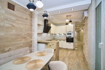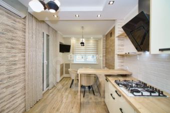 Особое внимание заслуживает дизайнерский ремонт, который выполнен с использованием качественных материалов. Остается встроенный кухонный гарнитур со встроенной бытовой техникой, шкаф-купе, гардины, люстры, шторы и практически вся мебель.
