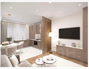 Планировкой предусмотрены: кухня-гостиная с лоджией, спальня, ванная комната и гардеробная.
