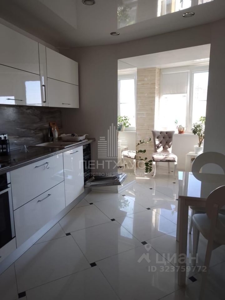 В гостиной электрический камин с полкой из розового мрамора. Кухня "Дядьково" белый глянец,укомплектована дорогой встраиваемой бытовой техникой(посудомоечная машина,варочная поверхность и духовой шкаф-дорогой немецкой фирмы Neff,вытяжка). Утепленная лоджия увеличивает пространство гостиной,в которой установлен кондиционер.
