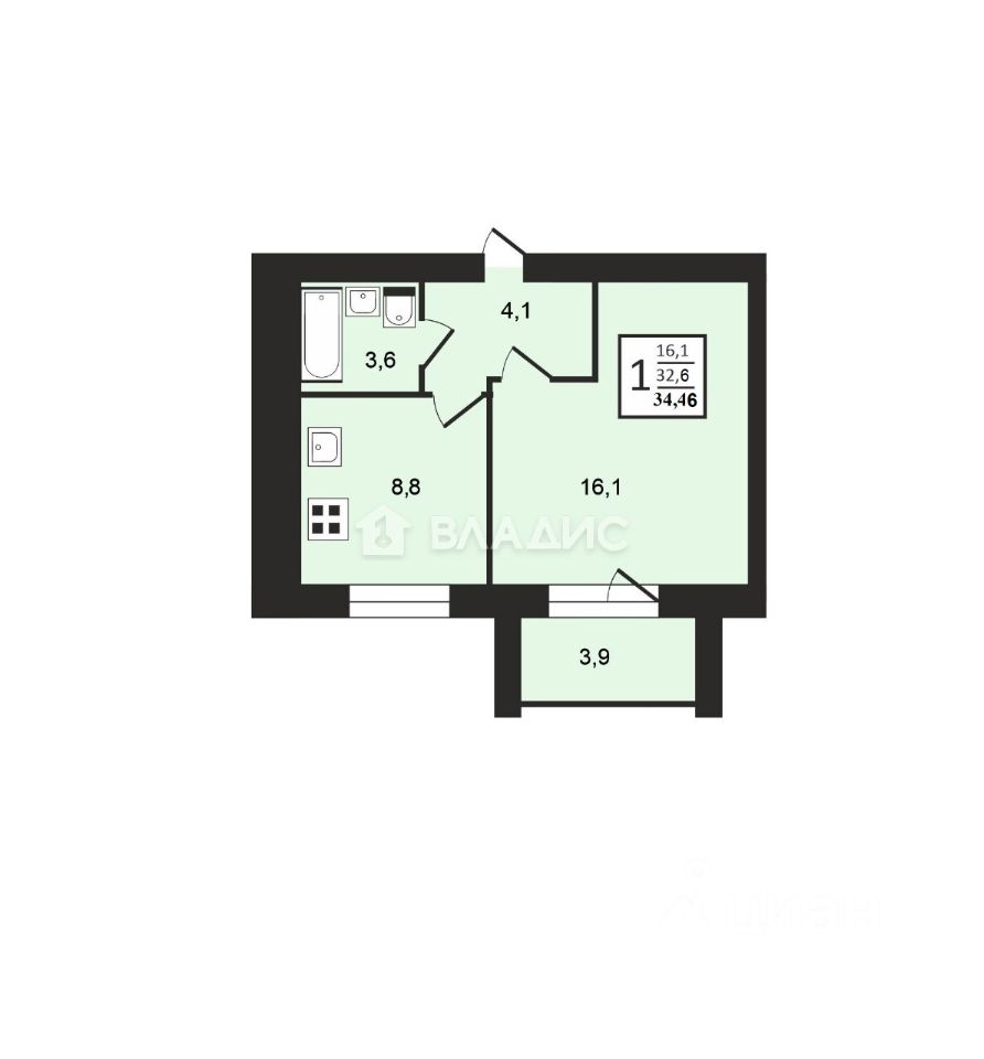 32,6 м²