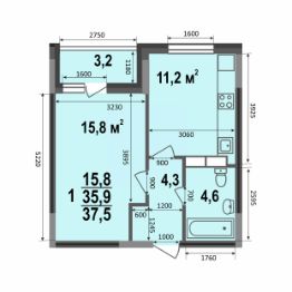 Общая площадь37,5 м²