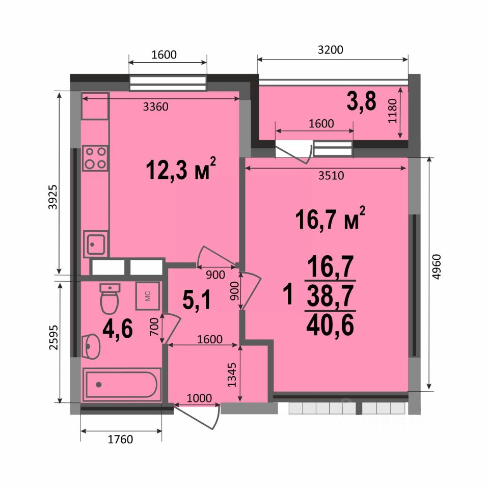 Общая площадь40,6 м²