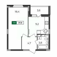 1-комнатная квартира 37,9 кв.м в 1 подъезде ЖК "Сталинградский бульвар 5".