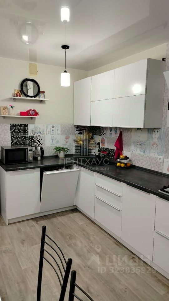 Просторная кухня 16 кв. м в которой новым хозяевам оставляем всю бытовую технику и мебель: кухонный гарнитур, варочная панель, вытяжка, духовой шкаф, холодильник, посудомоечная машина,кухонный стол и стулья, кондиционер, большой телевизор.