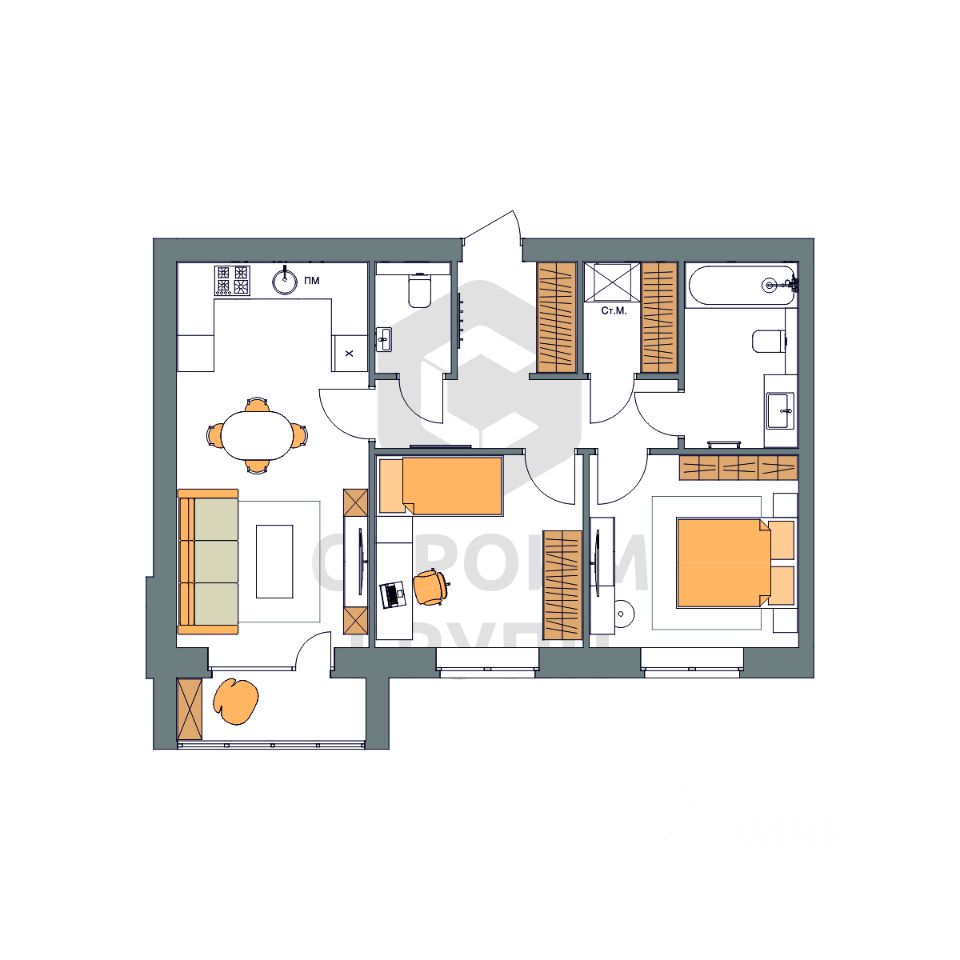 Особенностью этой двухкомнатной квартиры является объединенная с кухней гостиная общей площадью почти 20 квадратных метров! Помещение разделено на зоны для приготовления пищи, где можно установить кухонный гарнитур и большой обеденный стол для всей семьи, и ТВ-зону, где поместится хороший просторный диван. Из комнаты имеется выход на просторную лоджию площадью 3,15 квадратных метра. При сдаче дома лоджия будет остеклена! При такой планировке совмещенной кухни и гостиной, неоспоримым преимуществом этой двухкомнатной квартиры являются две отдельные комнаты площадью почти 11 квадратных метров каждая. Одну из них можно использовать под спальную комнату с размещением там широкой кровати или раскладного дивана. Предусмотрено место под вместительный шкаф для одежды. Вторую комнату можно использовать в качестве детской или кабинета. Интересным и полезным решением в этой двухкомнатной квартире стали два санузла! Один - полноценный, площадью 5,6 квадратных метра, где можно установить раковину, ванну и стиральную машину, а второй - небольшой, площадью 2,2 квадратных метра, с отдельными унитазом и раковиной. Для семьи с детьми - очень актуальное решение. Обратите внимание - рядом с большим санузлом есть отдельное помещение площадью почти 2,8 квадратных метра, которое можно использовать в качестве постирочной комнаты или гардероба. Просторная прихожая является непроходной. Изолированность прихожей позволяет держать в чистоте остальные помещения квартиры грязь с улицы не будет разноситься по комнатам. Доступны такие способы покупки, как наличные, ипотека от ведущих банков (в т.ч. все программы с субсидиями и господдержка), ипотека со снижением ставки за счёт застройщика, рассрочка до 2 лет напрямую от застройщика. В цену квартиры сразу входит ремонт в формате White Box с гарантией на все работы!