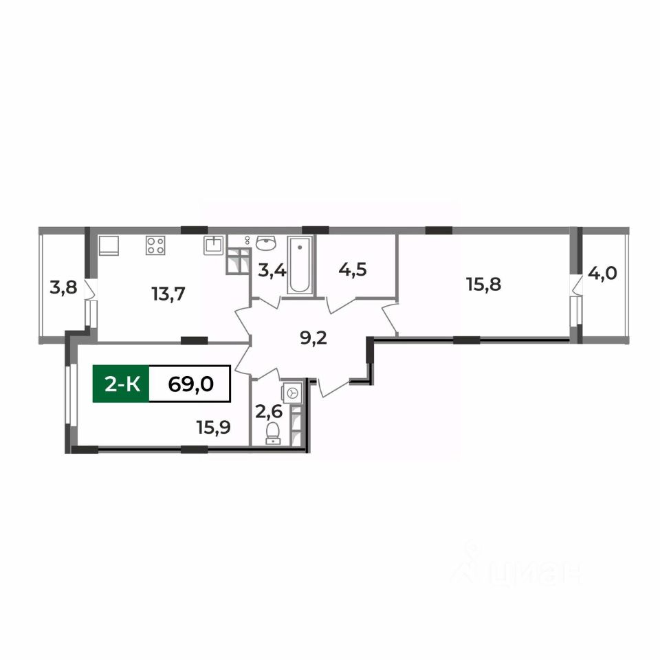 Представляем вам вместительную двухкомнатную квартиру 69 кв.м в жилом комплексе "Чайковский". Это настоящий жемчужина среди наших предложений.