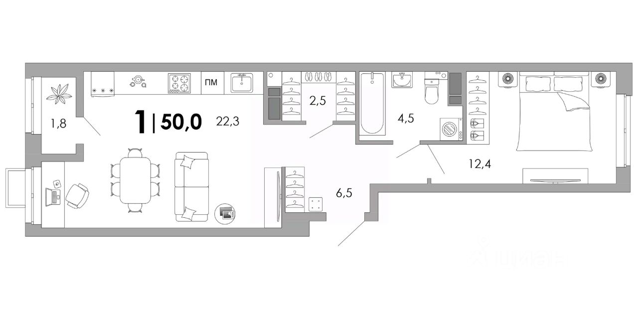 Общая площадь50 м²