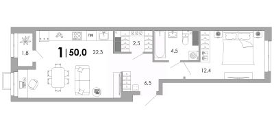 Жилая площадь12,4 м²