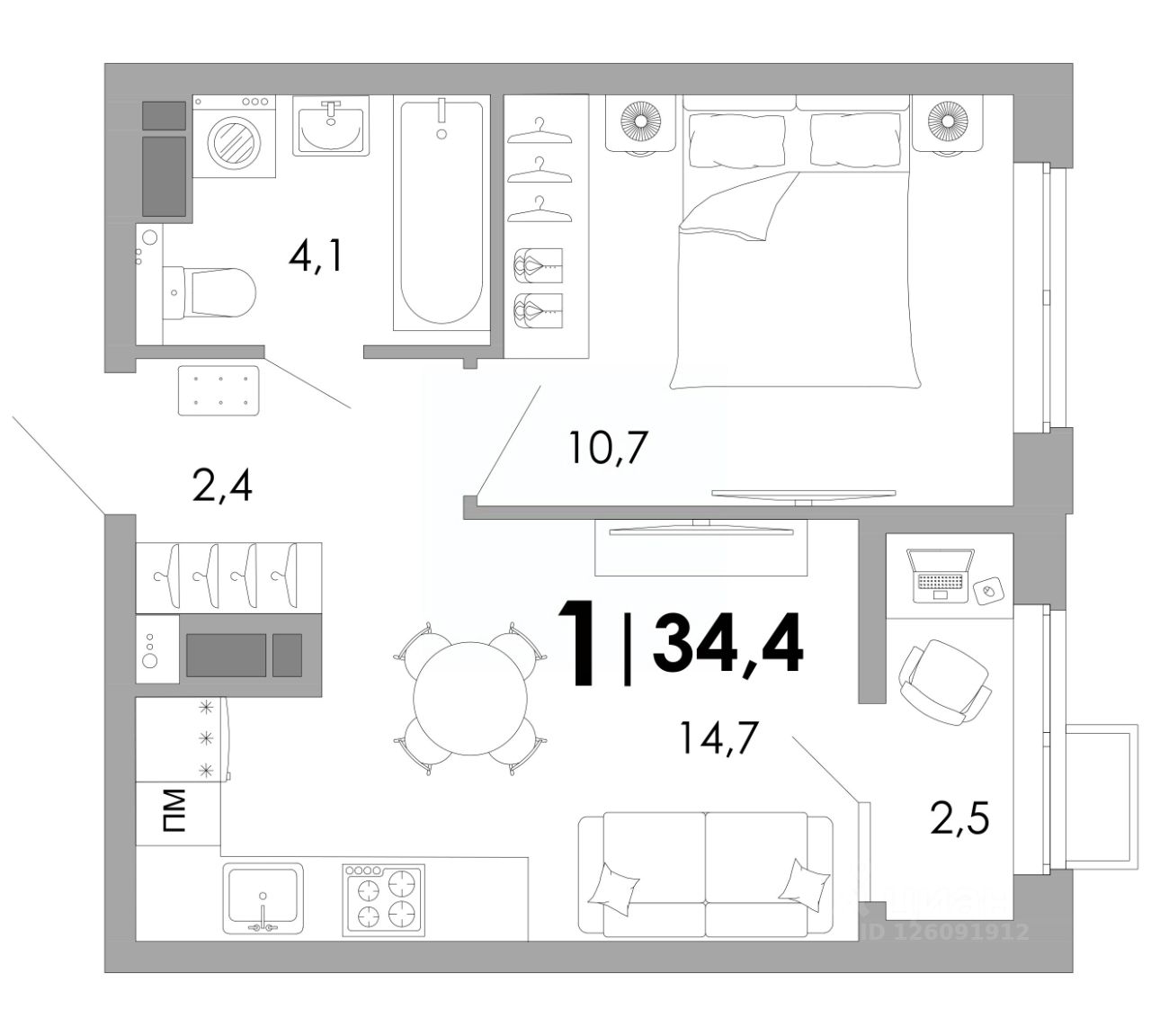 Общая площадь34,4 м²