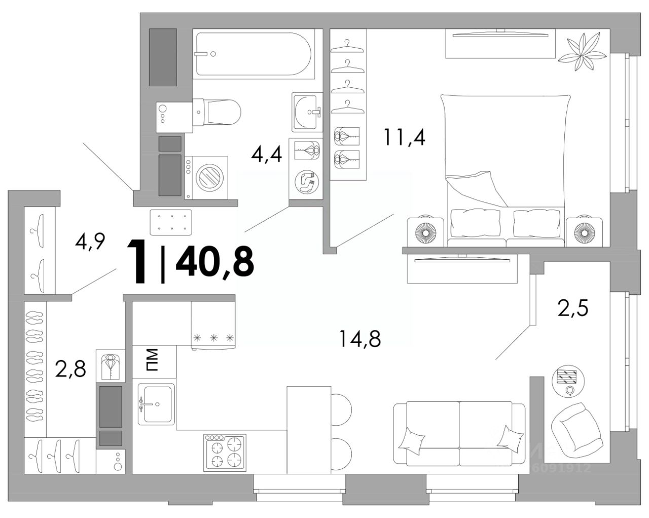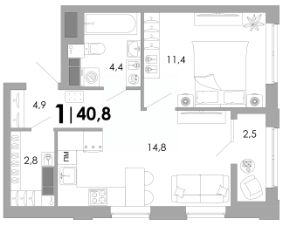 Общая площадь40,8 м²