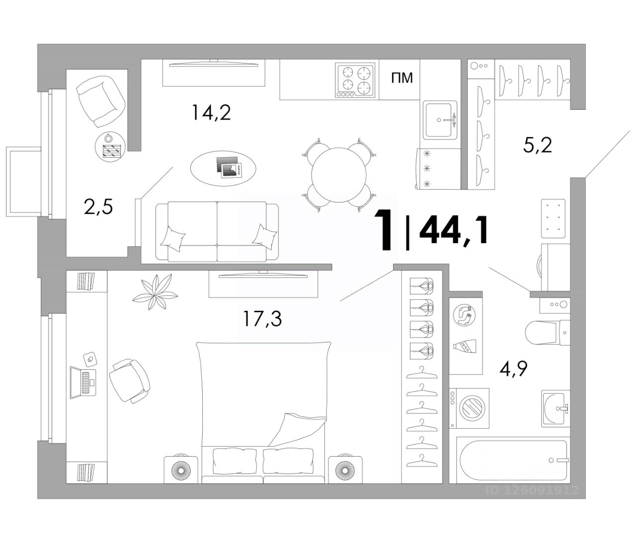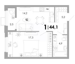 Общая площадь44,1 м²