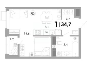 34,7 м²