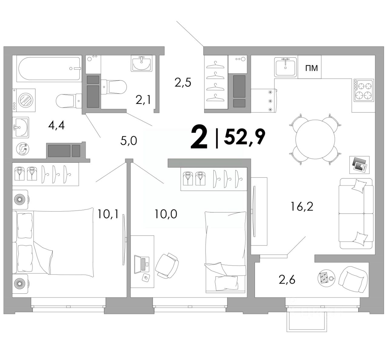 Общая площадь52,9 м²