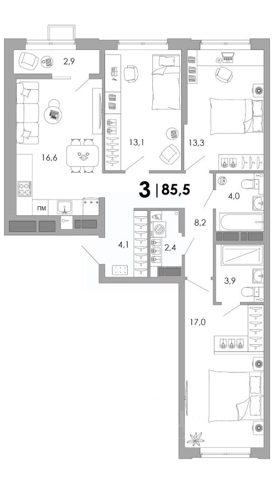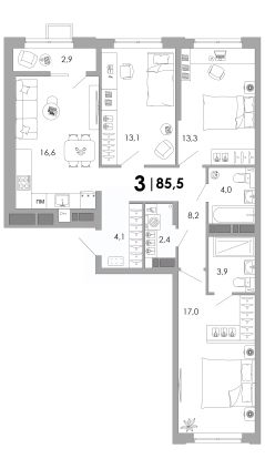 Общая площадь85,5 м²