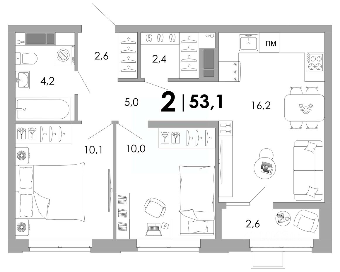 Общая площадь53,1 м²