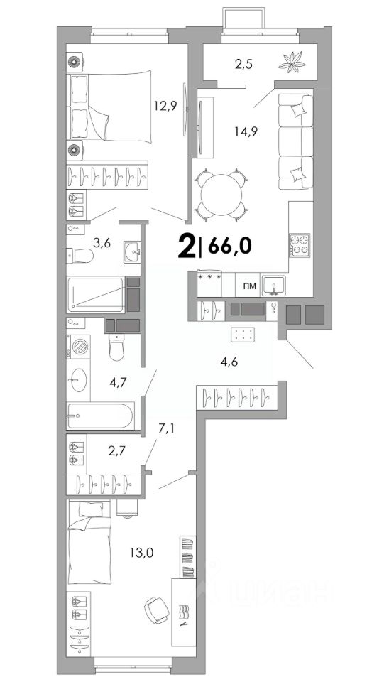 Общая площадь66 м²
