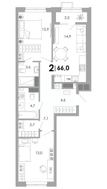 Продается 2-комн. квартира, 66 м²