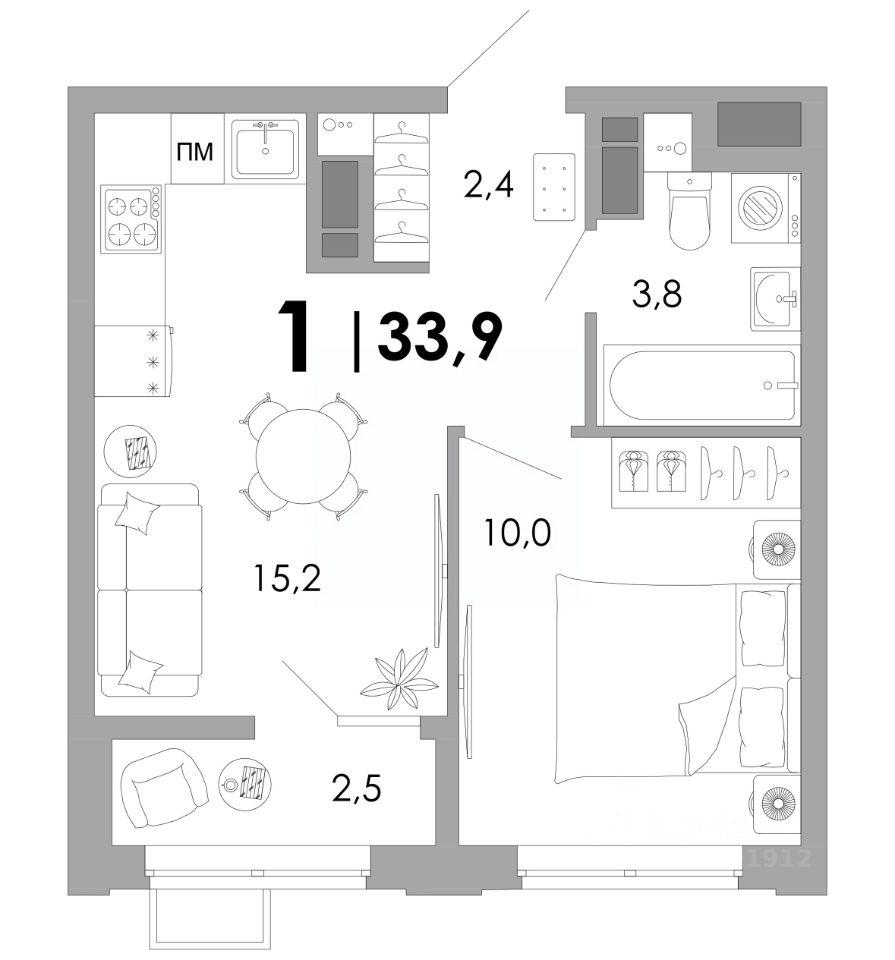 Общая площадь33,9 м²