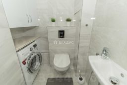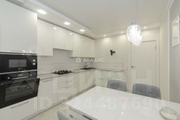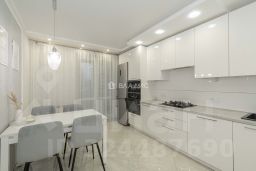 В квартире выполнен ремонт с использованием высококачественных отделочных материалов. Пол в комнатах уложен ламинатом 34 класса, остальная часть керамогранитом "KERRANOVA с системой "теплый пол". В сан. узлах плитка "KERAMA MARAZZI. Качественная сантехника, смесители "ORAS (Финляндия). Все оконные и балконные блоки были заменены и все створки открываются, в том числе и на балконах. Все комнаты изолированы элитными дверями из крашеного массива. Так же кухонный гарнитур выполнен из качественного МДФ с фасадами, покрытыми эмалью. Вся бытовая техника BOSCH остается и стиральная машина "LG тоже. Хозяева делали ремонт для себя, но были вынуждены переехать в другой город, с 2022 года в квартире никто не жил.