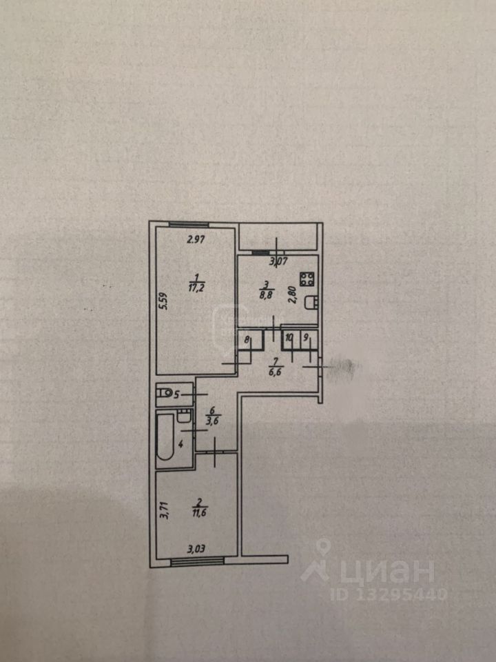 Площадь комнат: 17.2 и 11.6 кв.м.