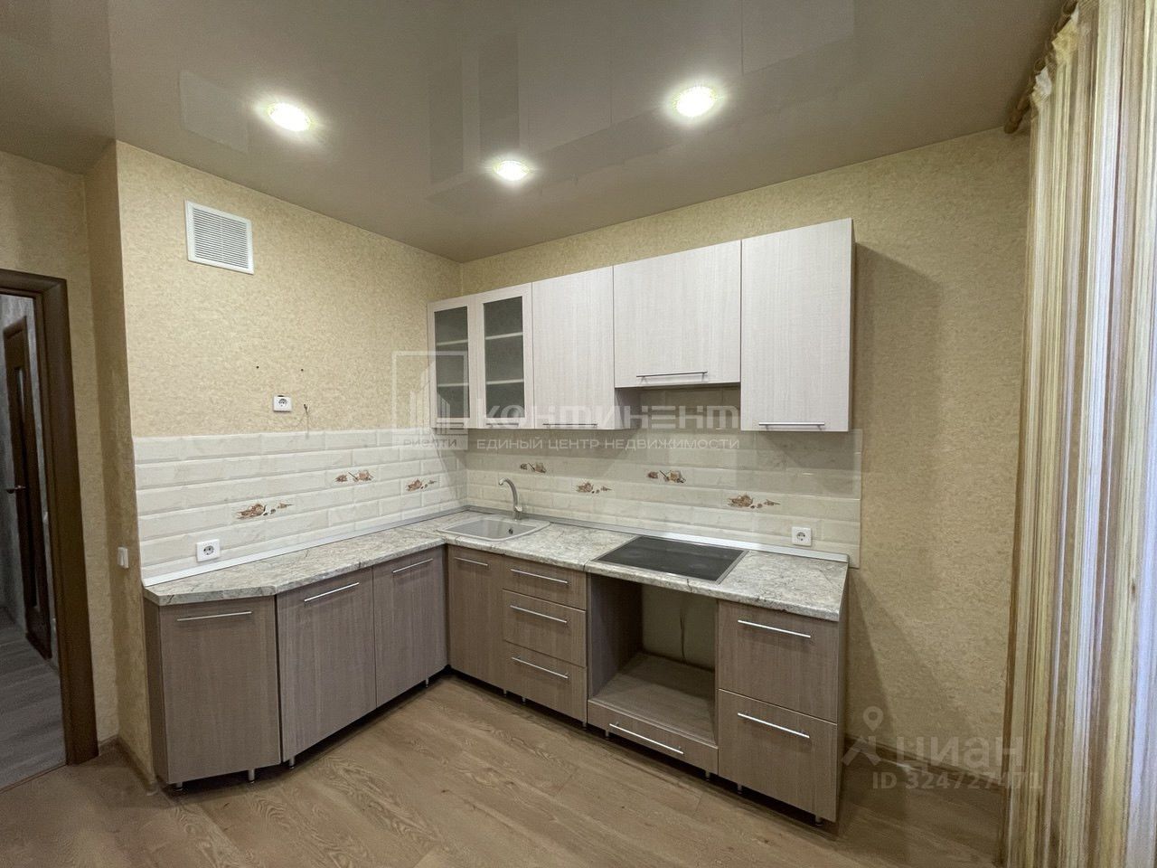 При продаже остается кухонный гарнитур и варочная панель.