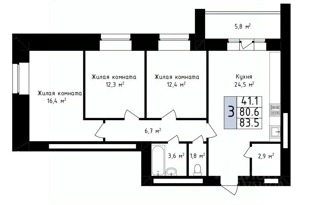 Продаётся 3-комнатная квартира в строящемся доме (дом 2), срок сдачи: III-кв. 2028, общей площадью 83.5 кв.м., на 5 этаже. Новый жилой комплекс "Фестивальный 2" от Специализированного застройщика "Гарант" расположен по адресу: г. Владимир, по ул. Фестивальная.