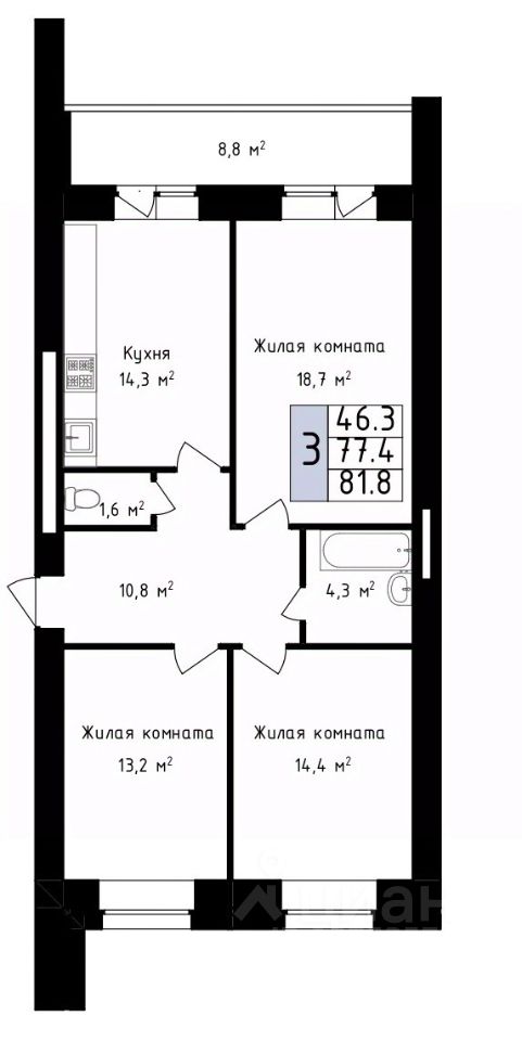Продаётся 3-комнатная квартира в строящемся доме (дом 2), срок сдачи: III-кв. 2028, общей площадью 81.8 кв.м., на 3 этаже. Новый жилой комплекс "Фестивальный 2" от Специализированного застройщика "Гарант" расположен по адресу: г. Владимир, по ул. Фестивальная.