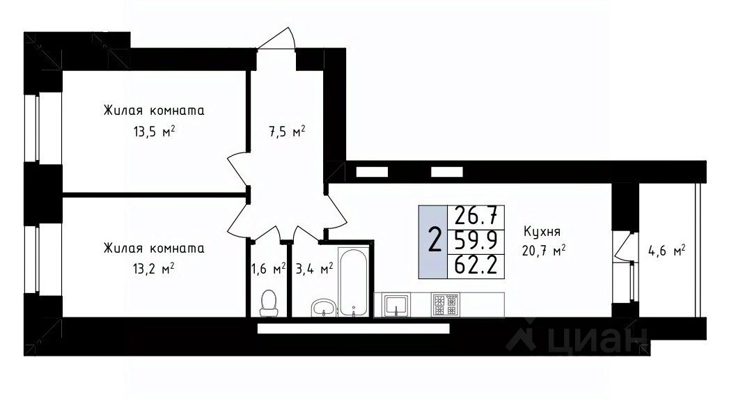 62,2 м²