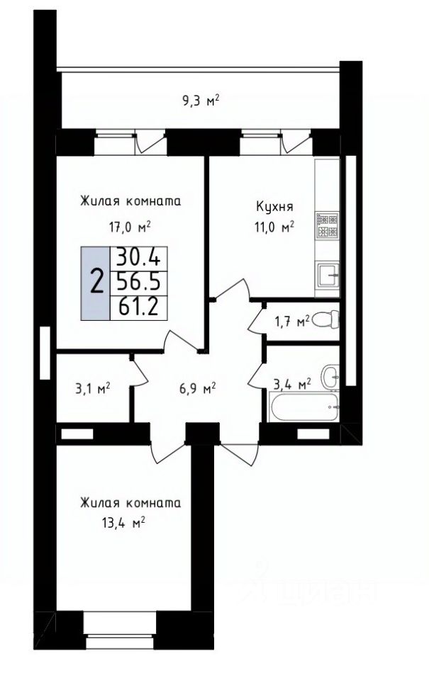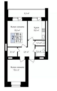 61,2 м²