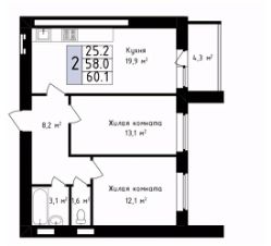 60,1 м²