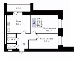 64,3 м²