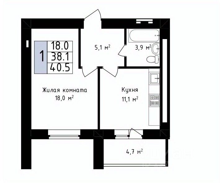 40,5 м²