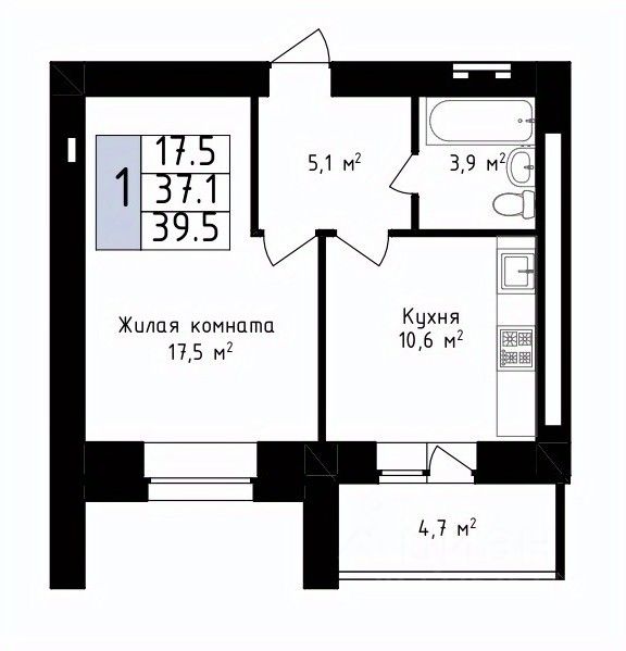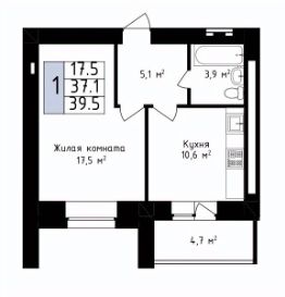 39,5 м²