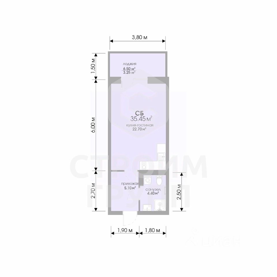 Общая площадь35,45 м²