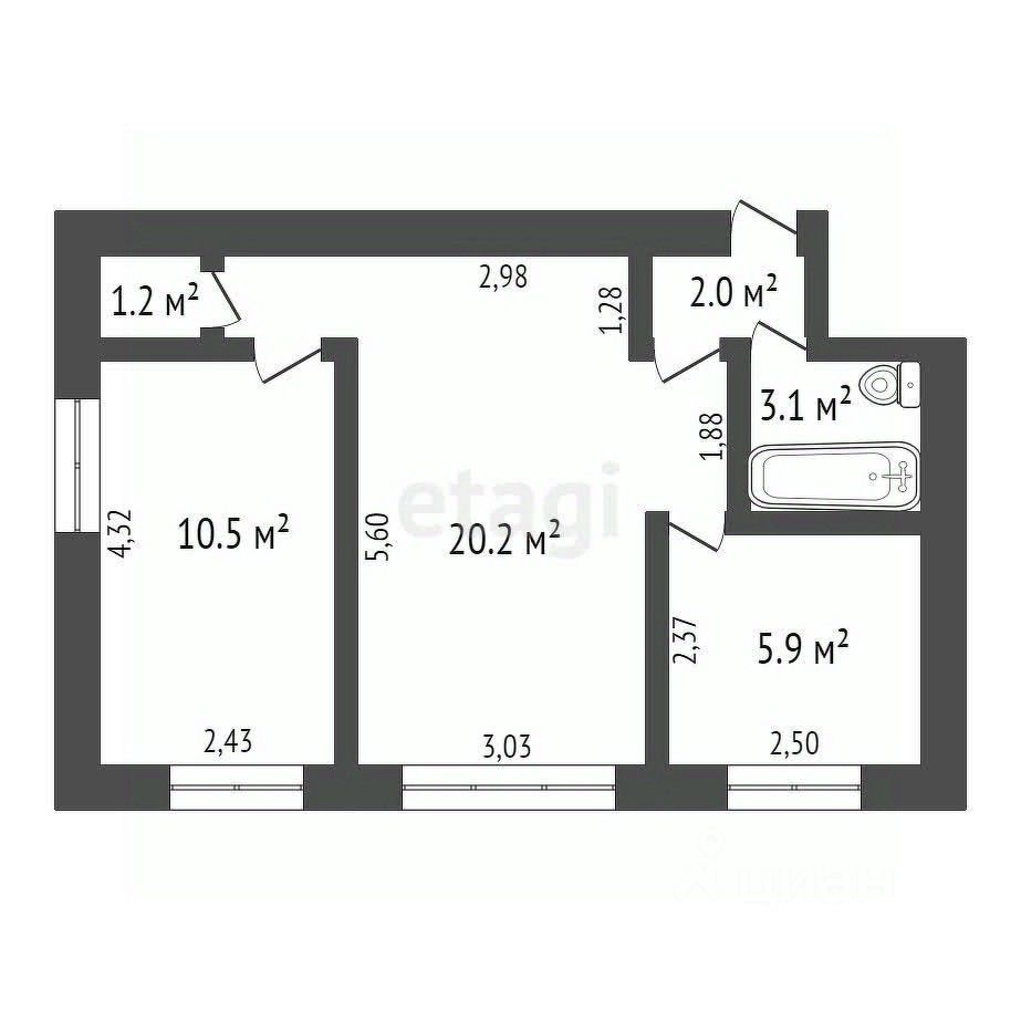 — Двухкомнатная квартира площадью 45,3 кв.м.