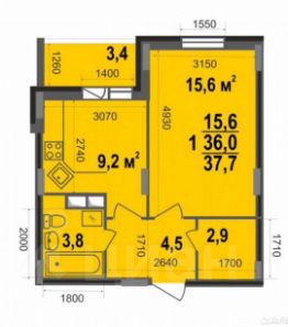 Площадь: 36,5 м²