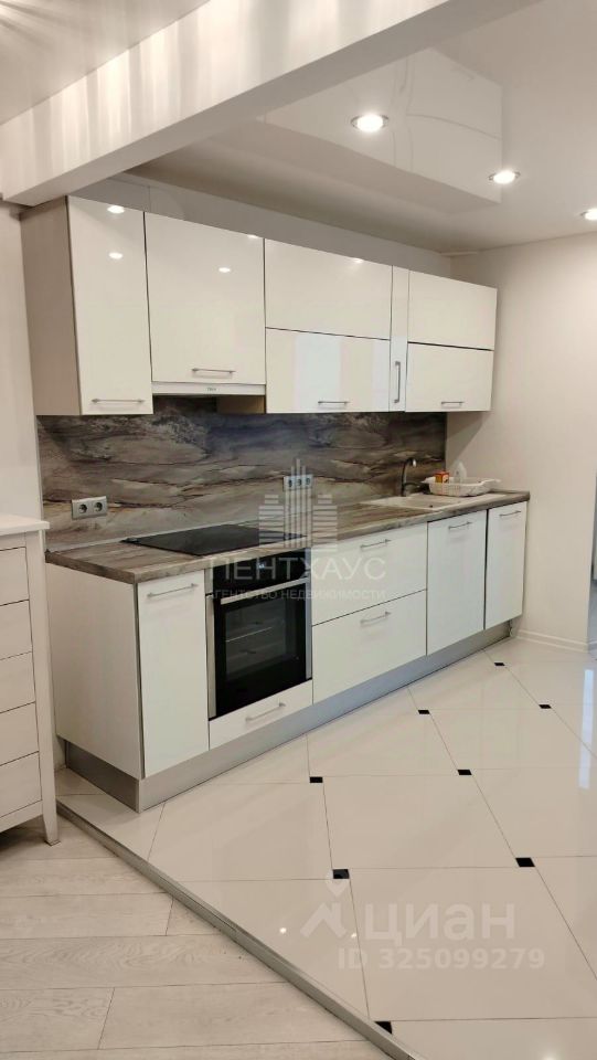 В гостиной электрический камин с полкой из розового мрамора. Кухня "Дядьково" белый глянец,укомплектована дорогой встраиваемой бытовой техникой(посудомоечная машина,варочная поверхность и духовой шкаф-дорогой немецкой фирмы Neff,вытяжка). Утепленная лоджия увеличивает пространство гостиной,в которой установлен кондиционер.