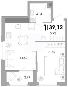Общая площадь39,12 м²