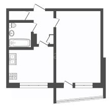 Улучшенная планировка: общая площадь 37,7 кв.м.; кухня - 9,2