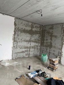 Сделана вся черновая отделка (стяжка пола, разводка электричества, на выходе из квартиры установлен мастер- свет, штукатурка стен).