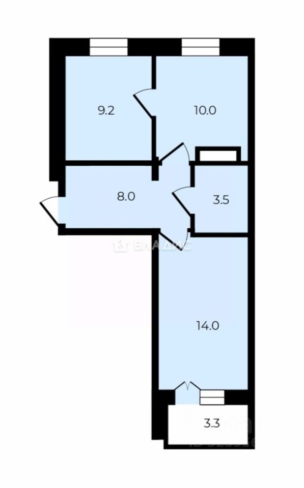 - комнаты - 14 и 9,2 м2;