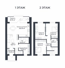 Продается двухэтажный таунхаус площадью 94,64 кв.м. в Доброграде по адресу: ул. Удачная дом 22, корпус 7.